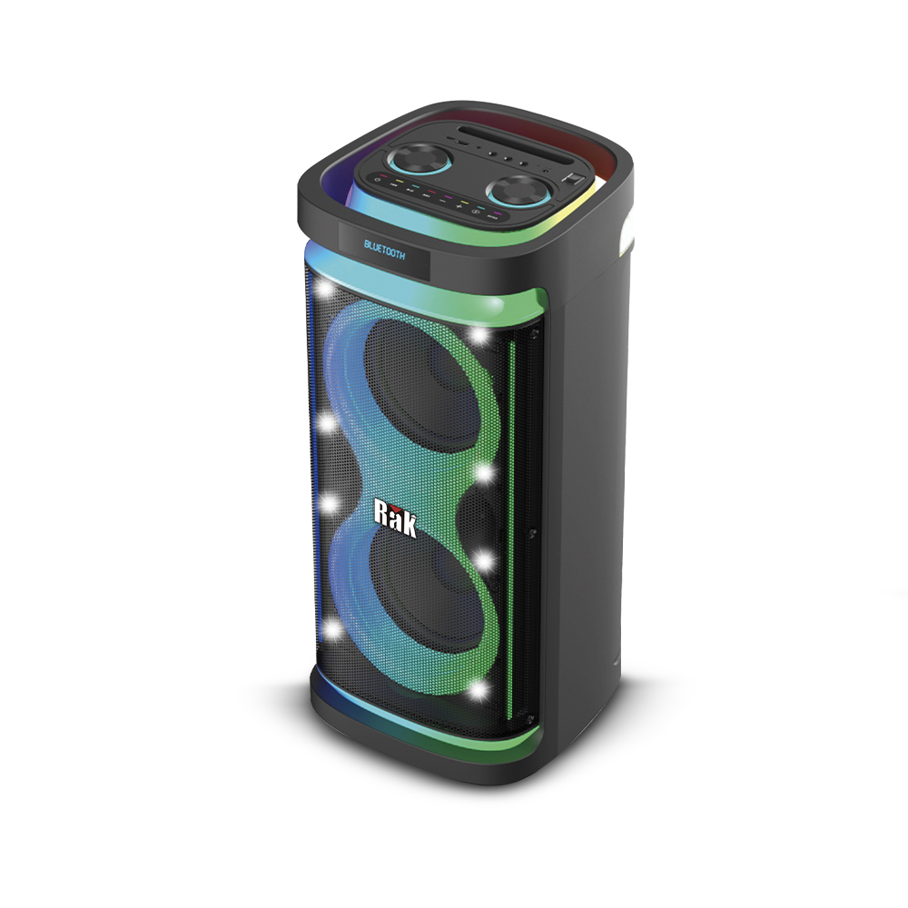 جنس بدنه : پلاستیک سبک و مقاوم توان خروجی : ۴۰ وات بلند گوها : ۲ عدد ساب ووفر ۶.۵ اینچ نمایشگر : LED باتری : لیتیومی 7.4 ولت 3600 میلی آمپر ساعت پخش بیسیم چند ساعته توان ورودی : آداپتور ۹ ولت 2 آمپر قابلیت های اتصال : TWS - USB - کارت TF- بلوتوث- رادیو FM ورودی ها : AUX- دو ورودی میکروفون ضبط صدا : دارد کنترل ها : Master Volume- ولوم میکروفون- تریبل و بیس نورپردازی : کلید خاموش/روشن نور LED لوازم جانبی : آداپتور ۹ ولت 2 آمپر - ریموت کنترل- دفترچه- میکروفون بیسیم VHF